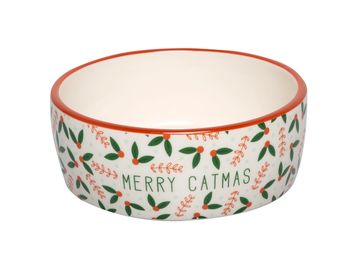 Feed your cat in style this holiday season with this festive and fun “merry catmas” cat food or water bowl.