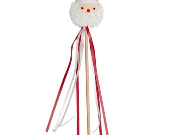 One wooden wand with plush Santa Claus toy and 8 long leather tassels