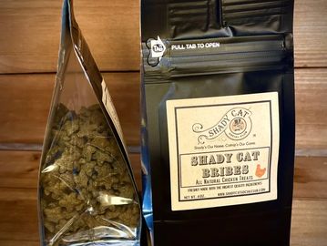 Healthy, tasty, shelf stable cat treats have arrived! Treats are offered in generous 4 oz. portions and have quite a long shelf life.